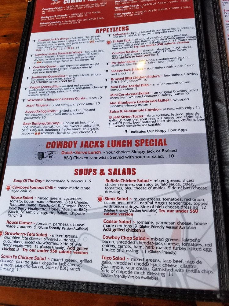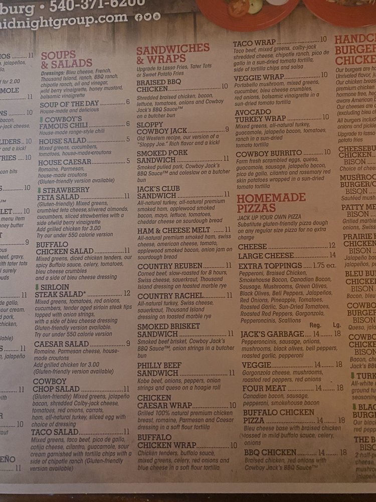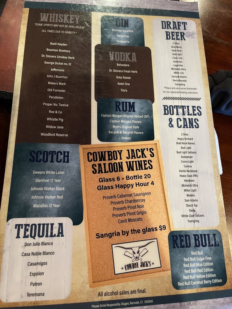 Cowboy Jack's Fredericksburg Menu